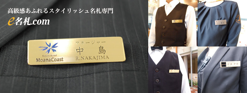オリジナル名札の専門サイト「e-名札.com」はドメイン名のとおり高級感あふれるスタイリッシュな「良い名札」をお作りしております。